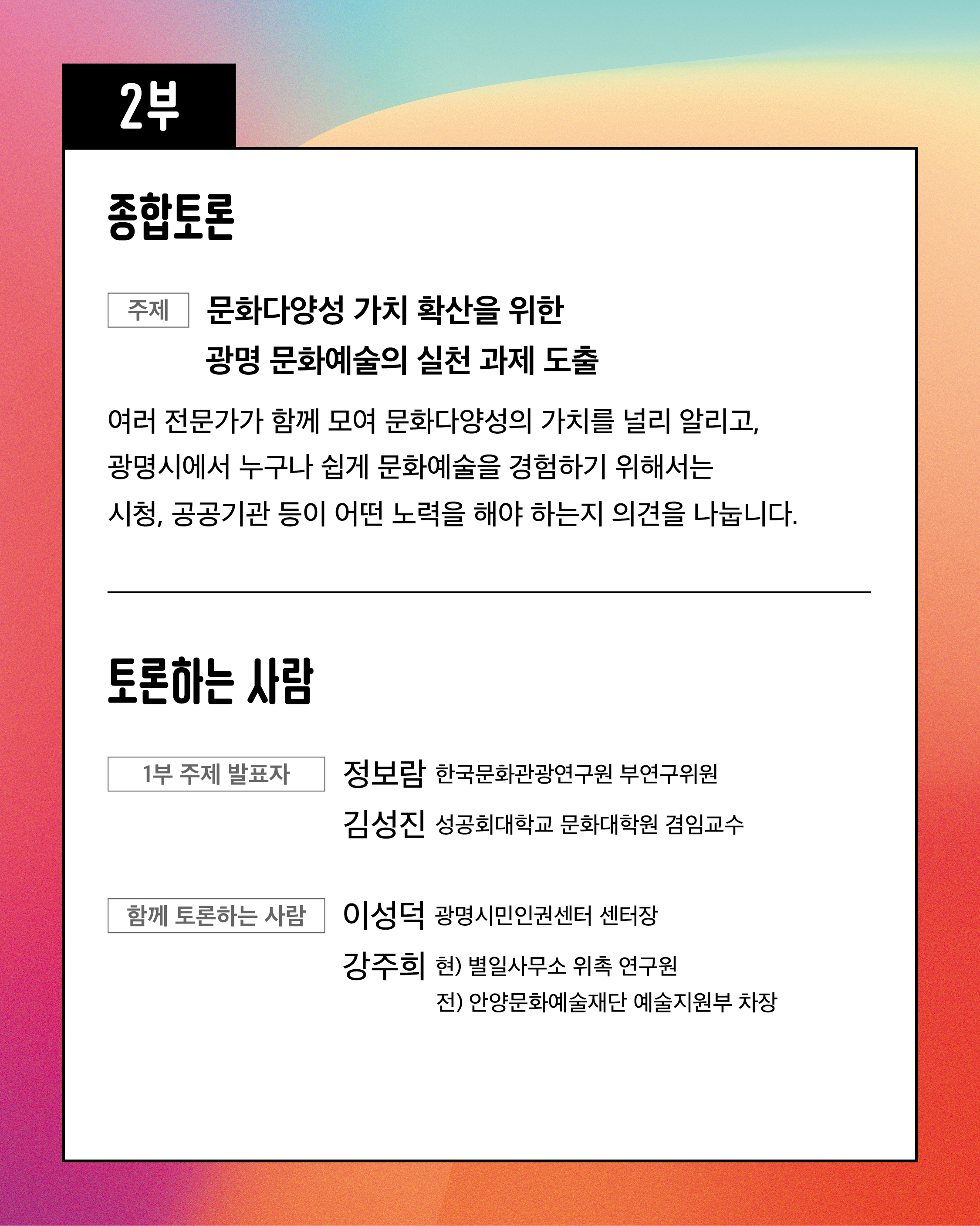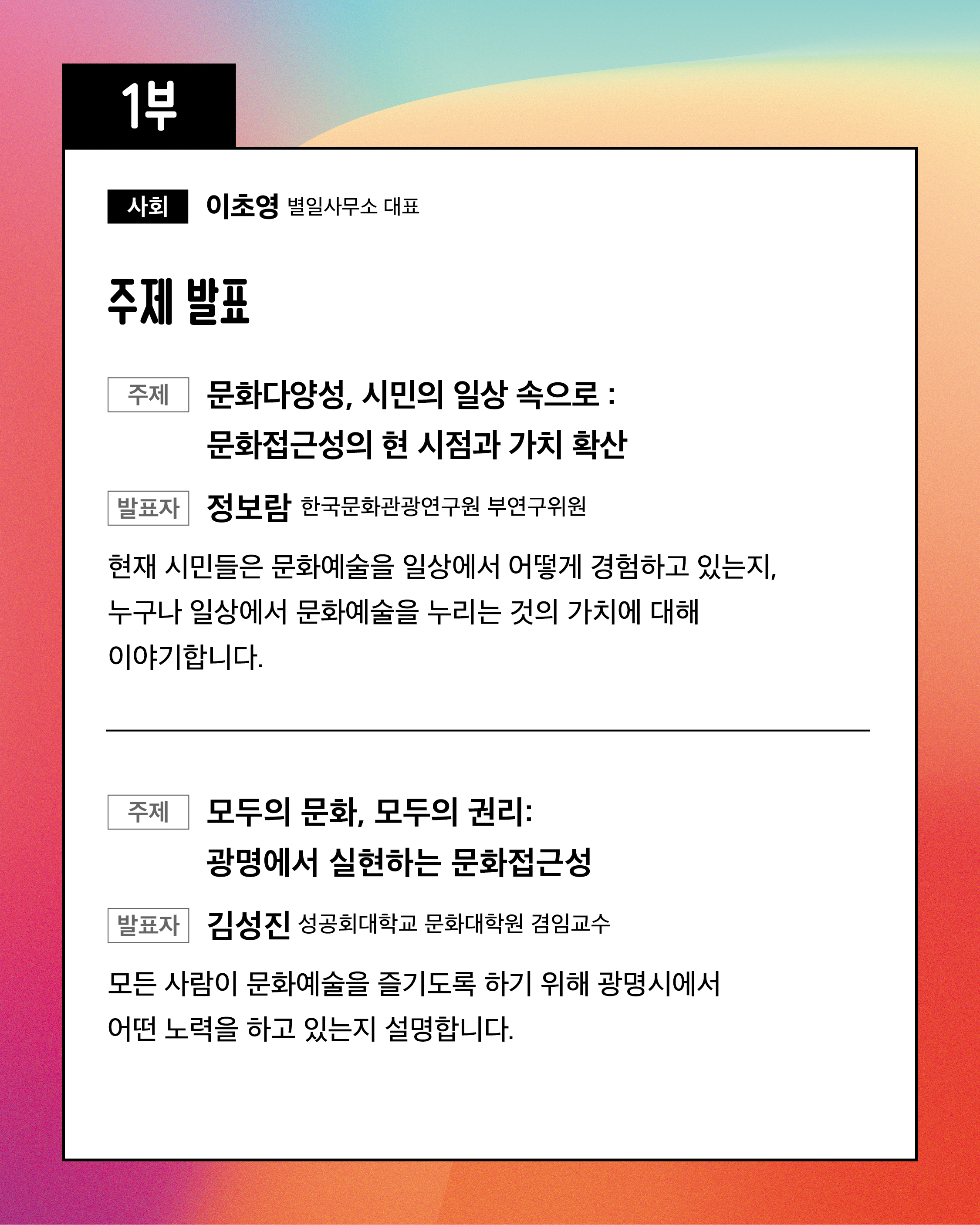 [문화예술소식]2025 광명문화 정책포럼 문화다양성 <모두가 즐기는 문화예술: 문화접근성과 공공의 역할>