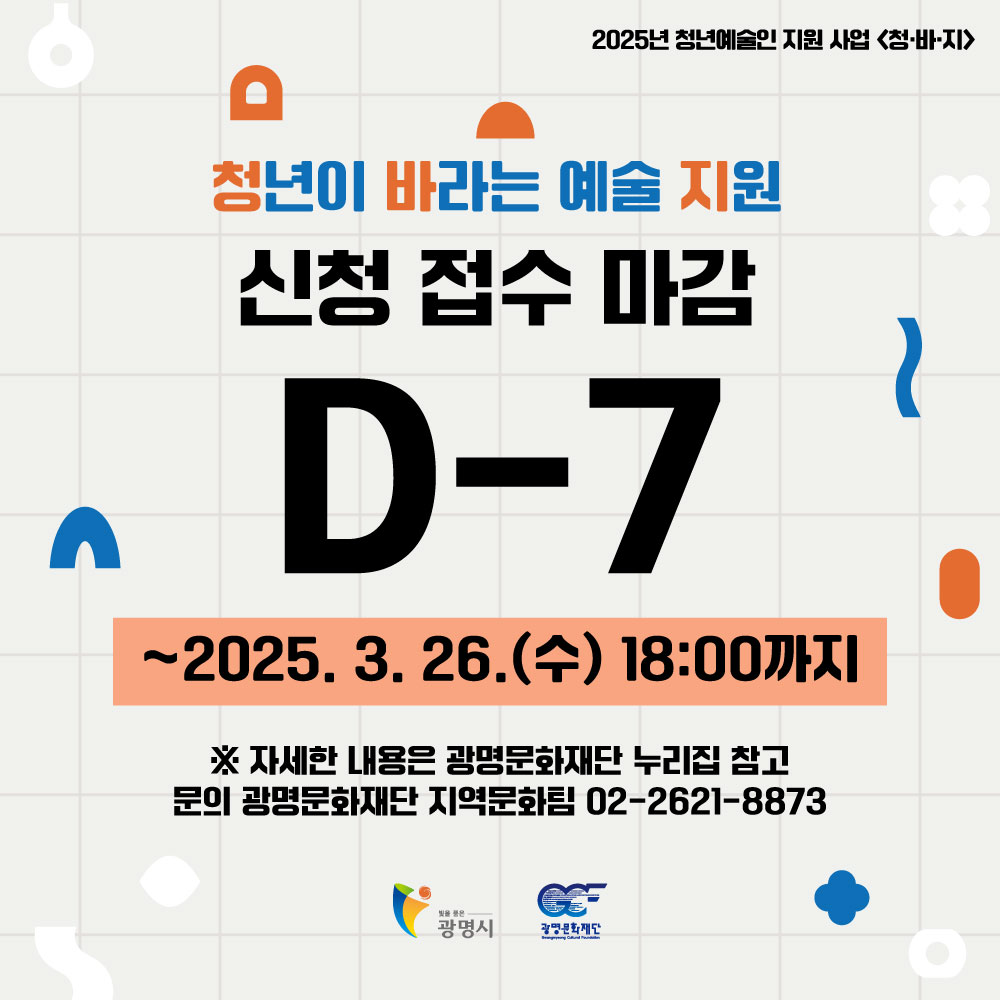 2025년 청년예술인 지원 사업 <청·바·지> 접수 마감 D-7 안내
