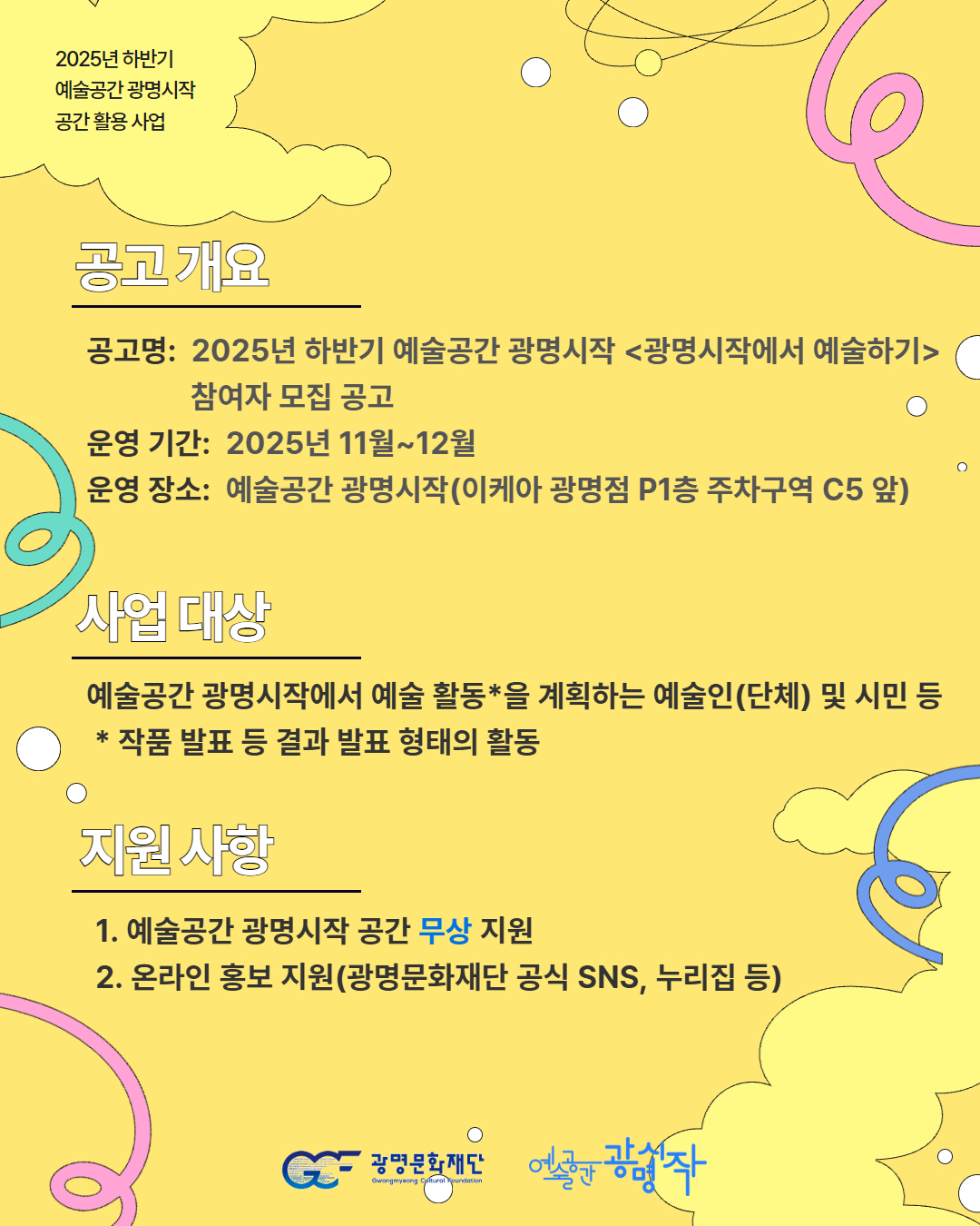 [문화예술소식]2025년 하반기 예술공간 광명시작 공간 활용 사업 <광명시작에서 예술하기> 참여자 모집 D-4