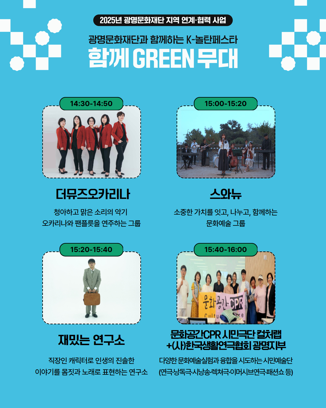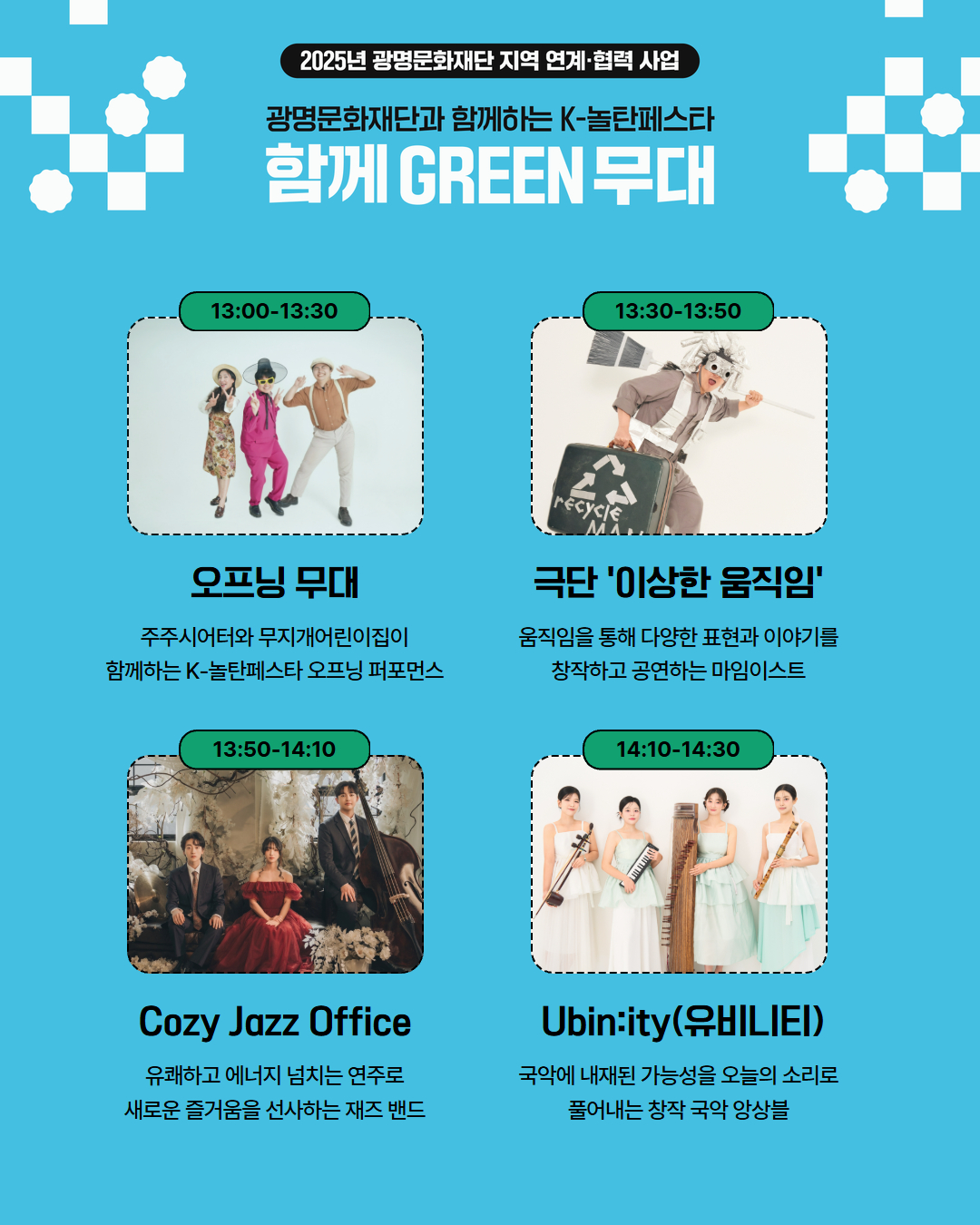 [문화예술소식]2025 지역 연계 협력 사업 광명문화재단과 함께하는 K-놀탄페스타 <함께 GREEN 무대> 공연팀 소개