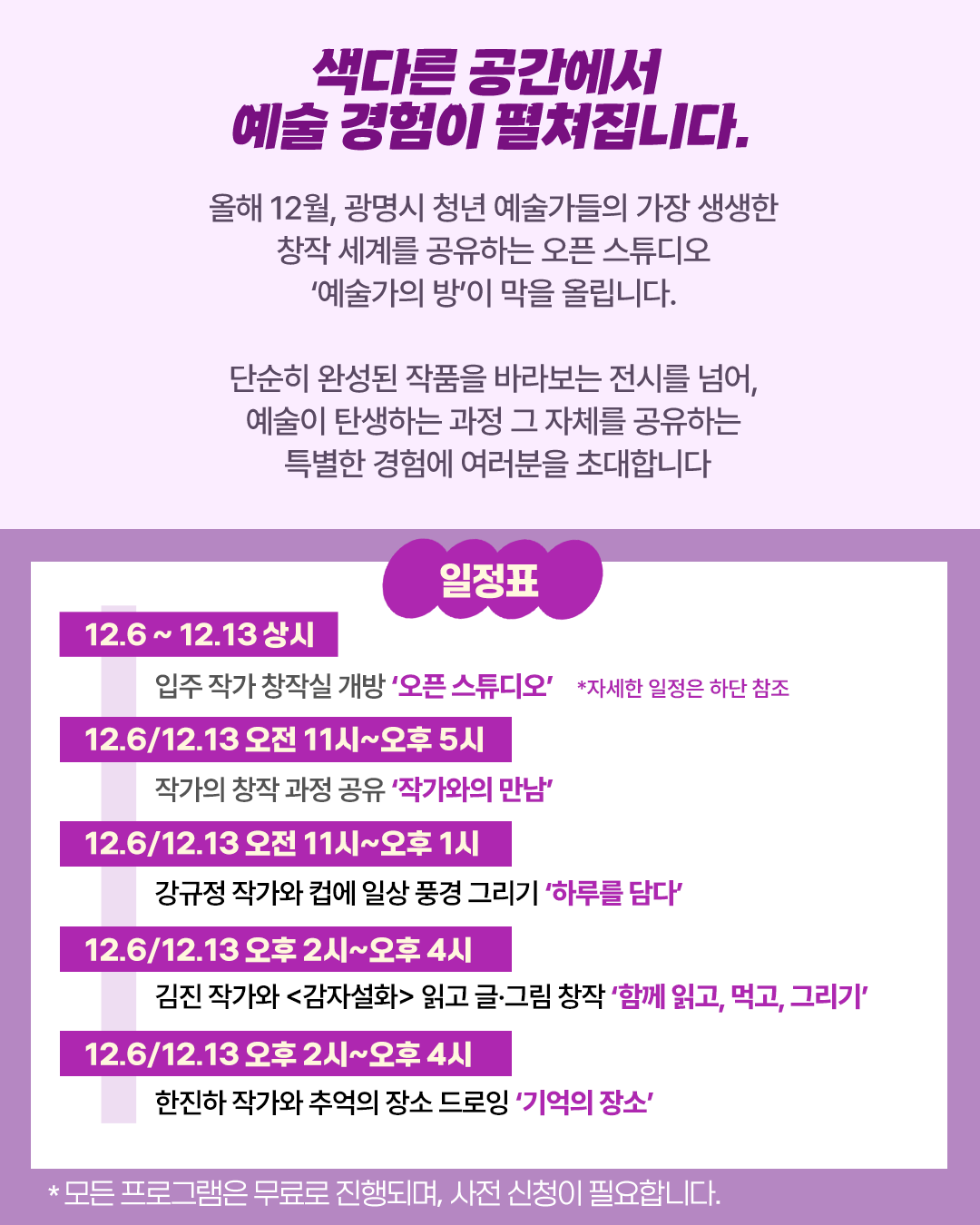 [문화예술소식][광명문화산책]특별한 예술 경험 ✨광명청년예술공장 '예술가의 방'✨